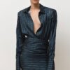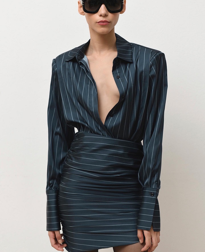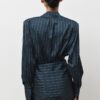 Κομψό μπλε πουκάμισο με λευκές ρίγες και βάτες στους ώμους. Ένα διαχρονικό κομμάτι που συνδυάζει κομψότητα και δυναμισμό.