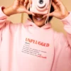 Ροζ Hoodie με Print “Unplugged”
