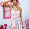 Με εντυπωσιακό μοτίβο στο ύφασμα και κομψή Α γραμμή, αγκαλιάζει όμορφα κάθε σωματότυπο, προσφέροντας θηλυκή και αέρινη εφαρμογή. Οι ρυθμιζόμενες τιράντες εξασφαλίζουν τέλεια εφαρμογή, ενώ η υφασμάτινη ζώνη τονίζει διακριτικά τη μέση.