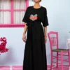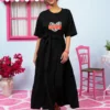 Yama T-shirt Frill Dress “Love” Μαύρο Κοντομάνικο Φόρεμα με Ζώνη Petit Boutik